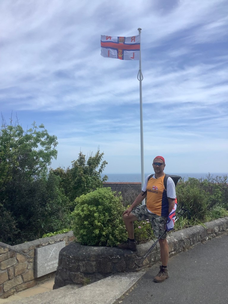 David set up a JustGiving page for the RNLI for this stage of our walk and was wearing his RNLI vest.