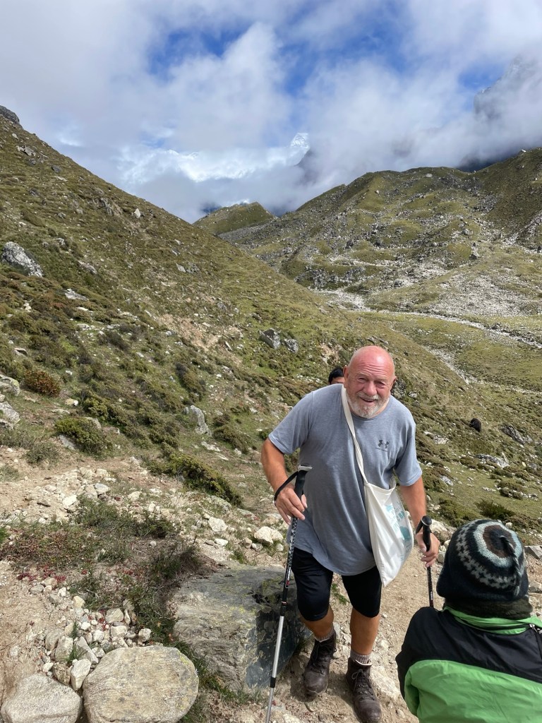 We dropped down to the valley floor and then started the long climb up. The usual stuff, huffing, puffing, counting steps and resting. Some people came past the other way and some asked me my age. I said it was an incredibly rude question to ask a 70 year old. I’m the oldest they’ve seen on this trek by a good margin but so what.