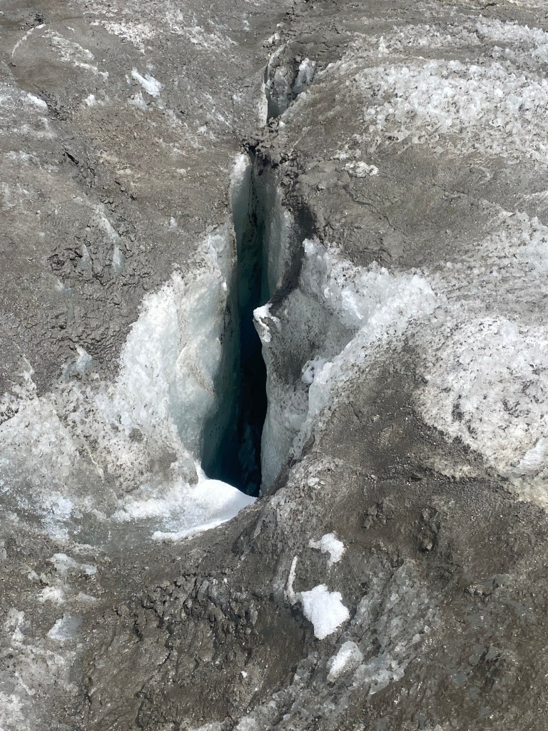 Then the streams started dipping into crevasses and disappearing. But you could still hear them and you knew they were somewhere underneath you. I hoped the tunnel roofs I was walking over didn’t collapse. Like this one had.