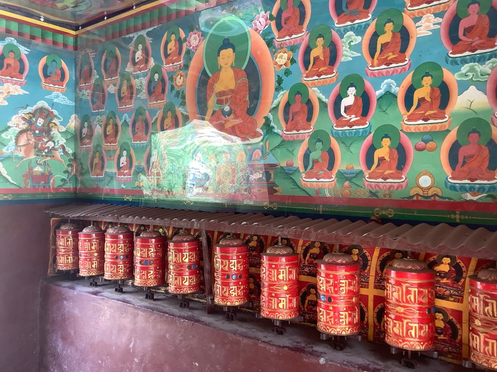 This is a Buddhist region in a Hindu country. A land of monasteries, Stupas with flags, gateway buildings with prayer wheels and be-robed Monks going shopping in town.