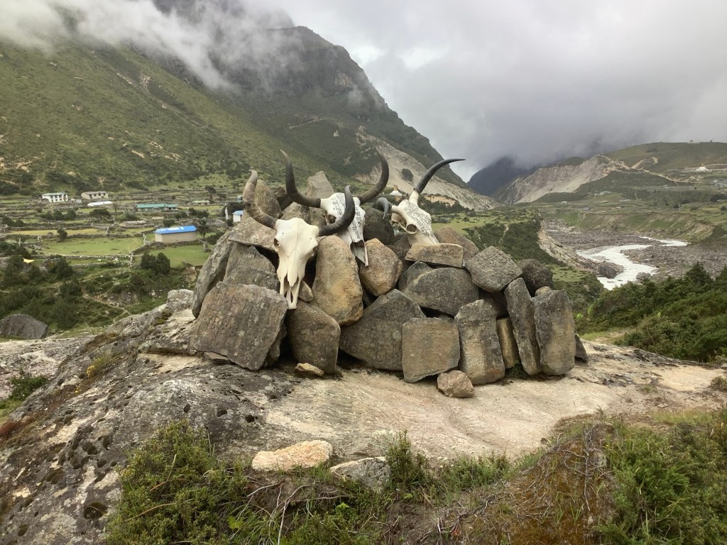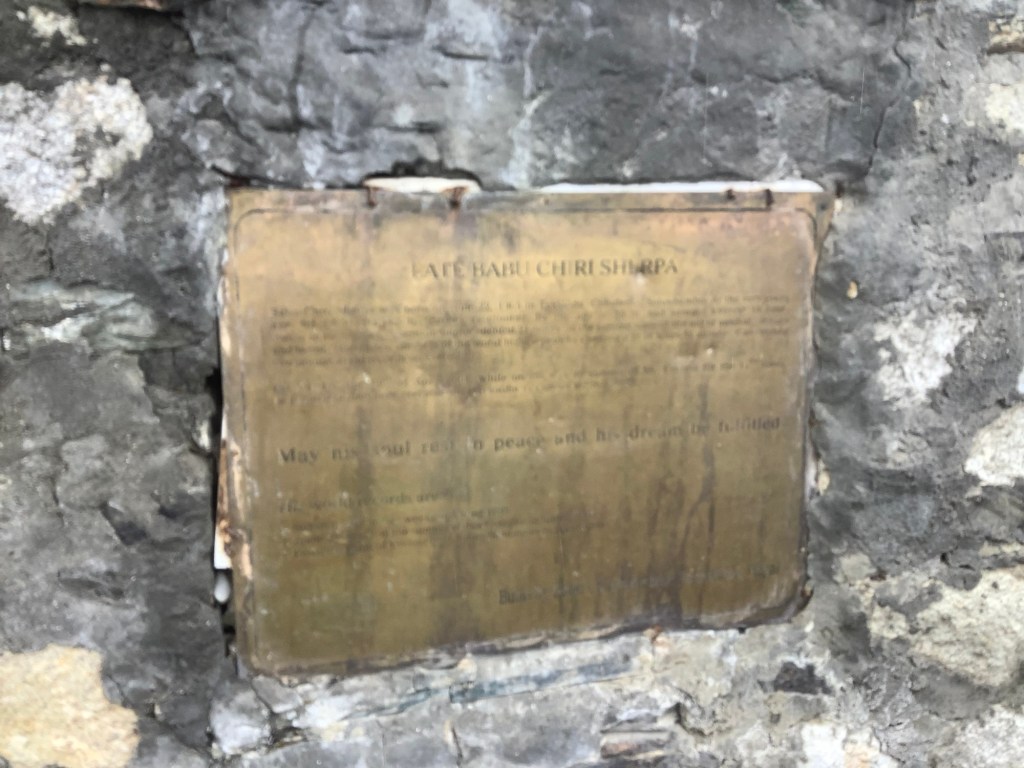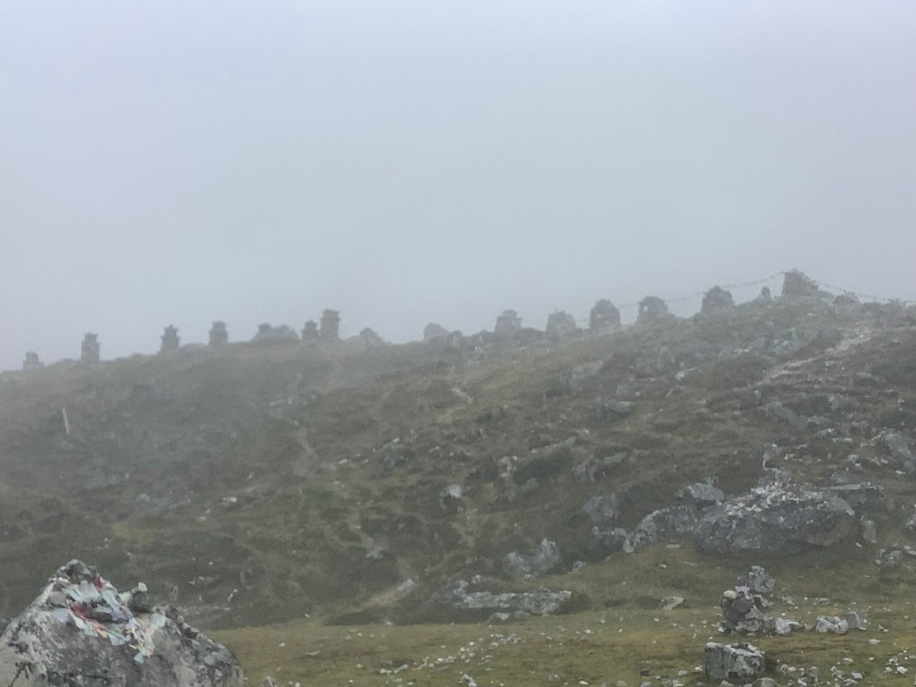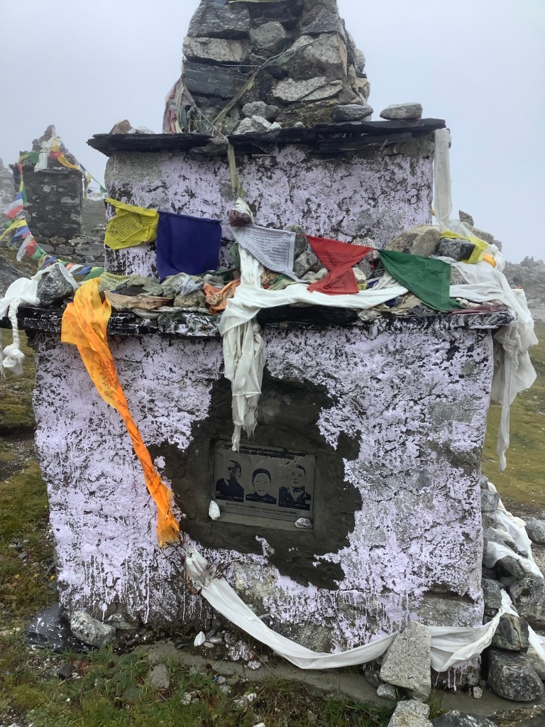 Before we arrived in Dughla we came upon memorials to those who have died climbing Everest. The cloud emphasised the sombreness of this display.
