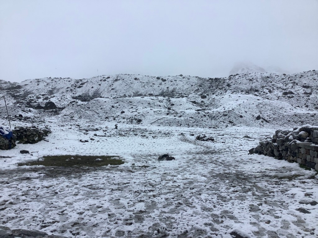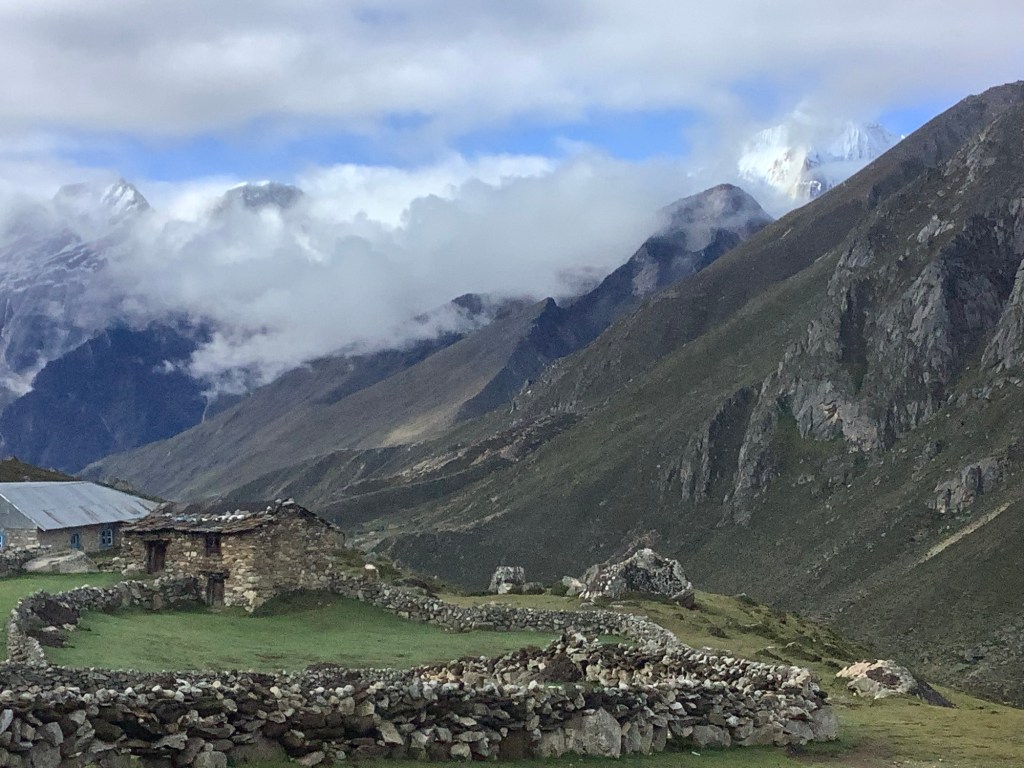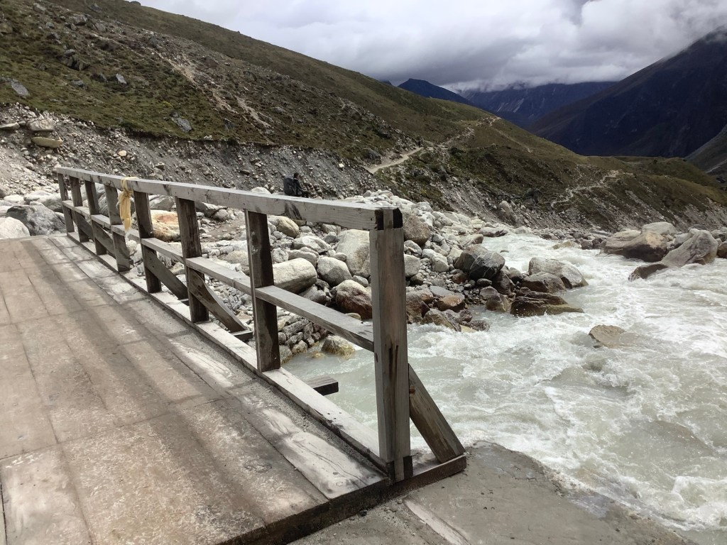 As the sky was darkening, rain started to fall and we finally made it to Lungde, where there were guest houses open. Two days ahead of schedule and 3,200 feet higher than we were this morning. I fell asleep in my clothes, hat and boots on my bed as soon as we arrived and Nir pulled the blanket over me. He brought me a cup of tea later. I made it down for dinner. We said we would meet over breakfast and decide what we were going to do.