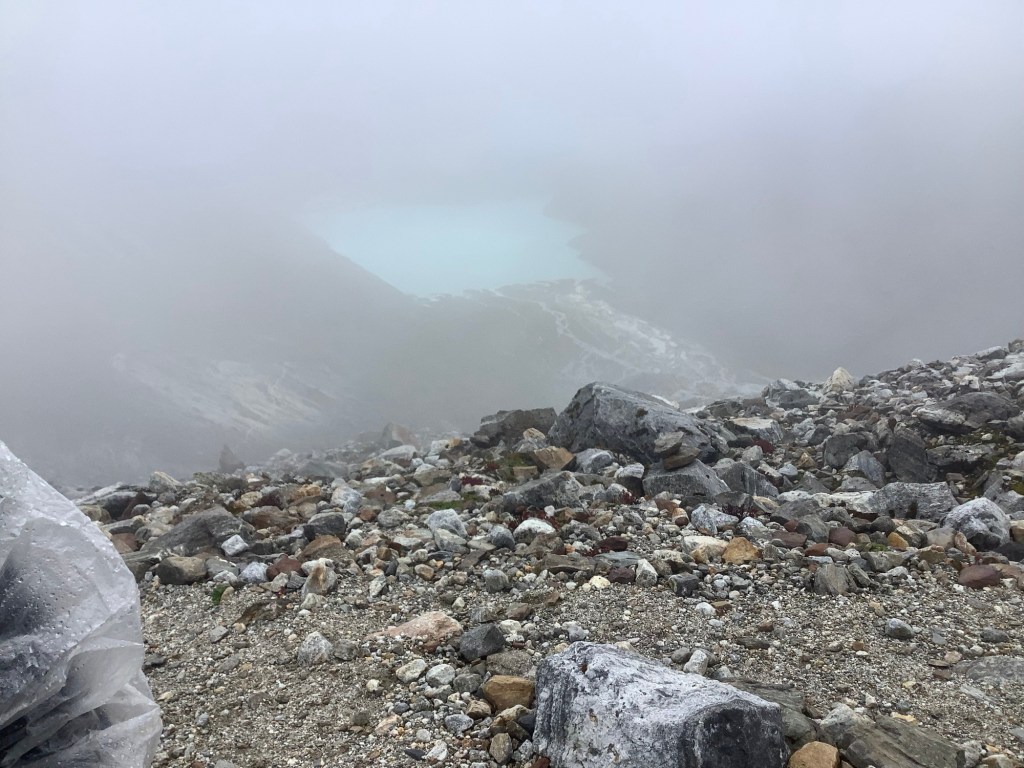 Looking back down, the lake below which we’d passed an hour ago was still visible in the cloud.