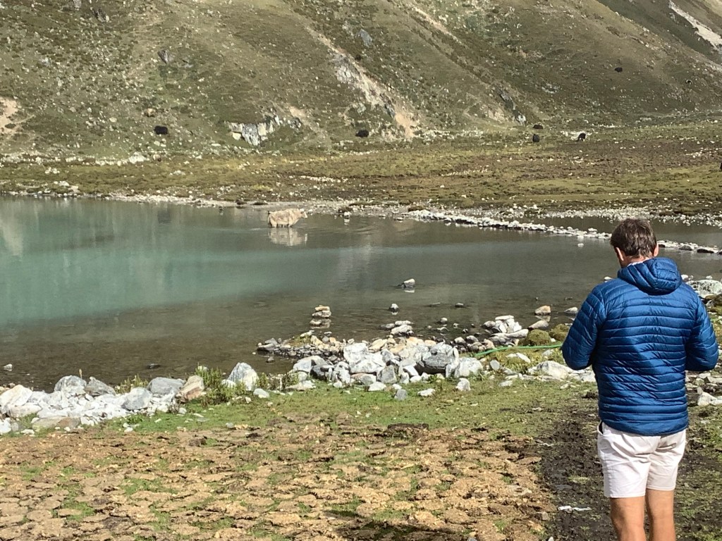 Today started brightly and yaks were wading in the lake.