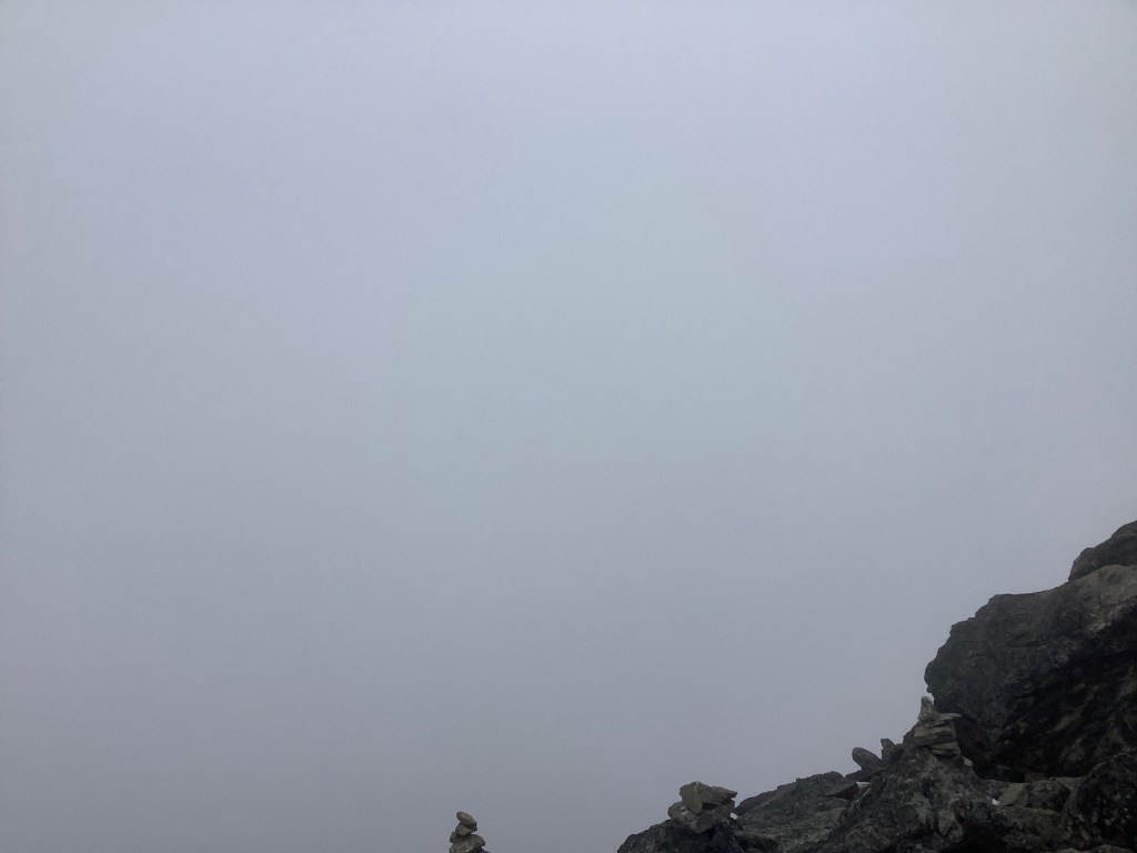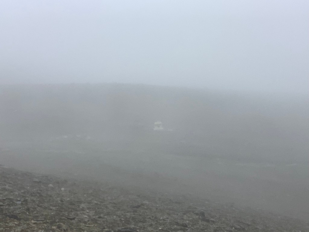 It started to rain, and as we dragged ourselves upward the rain turned to snow. Not heavy snow but pellets of snow that didn’t settle but nevertheless made themselves felt.