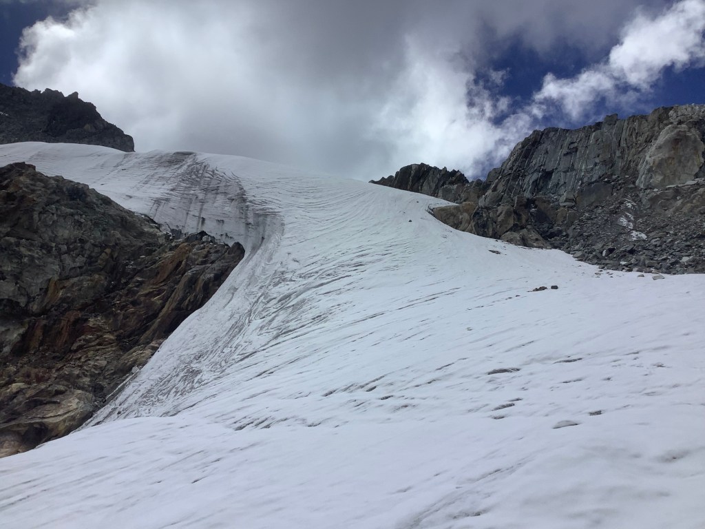 Looking to the side of the pass, over the back, was a steep ice and snow sheet.