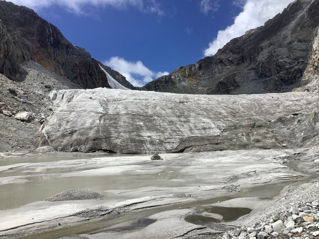 The ice turned to glacier, and it was very smooth with small streams running on the surface. We couldn’t assess how deep the ice was but, unlike the bigger, lower glaciers, this one didn’t have any rocks on top.