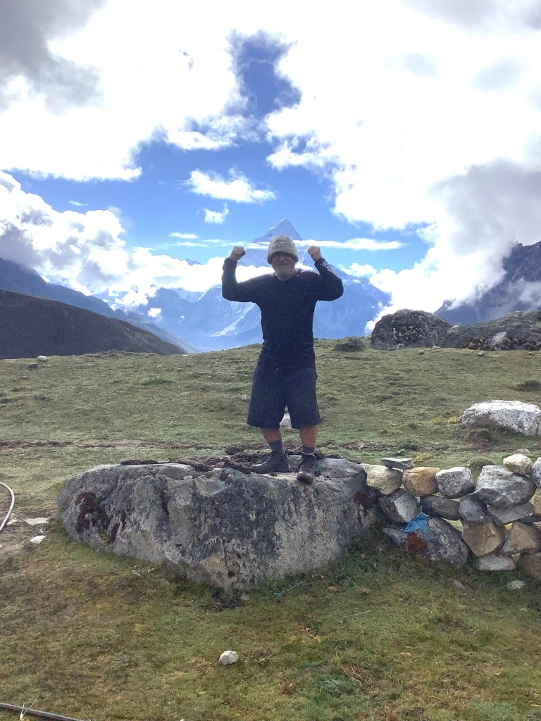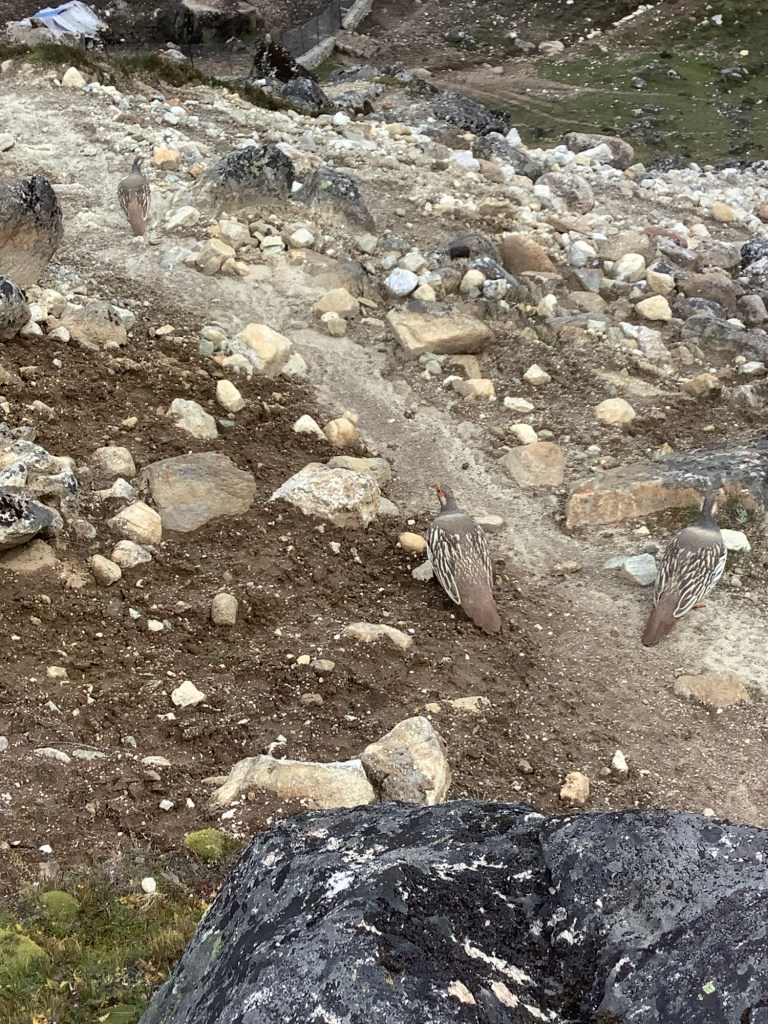 We got up early and met over breakfast. Chapati and eggs. Do we have a much needed rest day in this place? Or do we make a pitch for Renjo La, the first of our passes? In French, Renjo La ou pas? Aren’t I a clever little chap. Thank you Lord for sending me such a son, such a son, such a son, such a bum. Thanks Kevin.