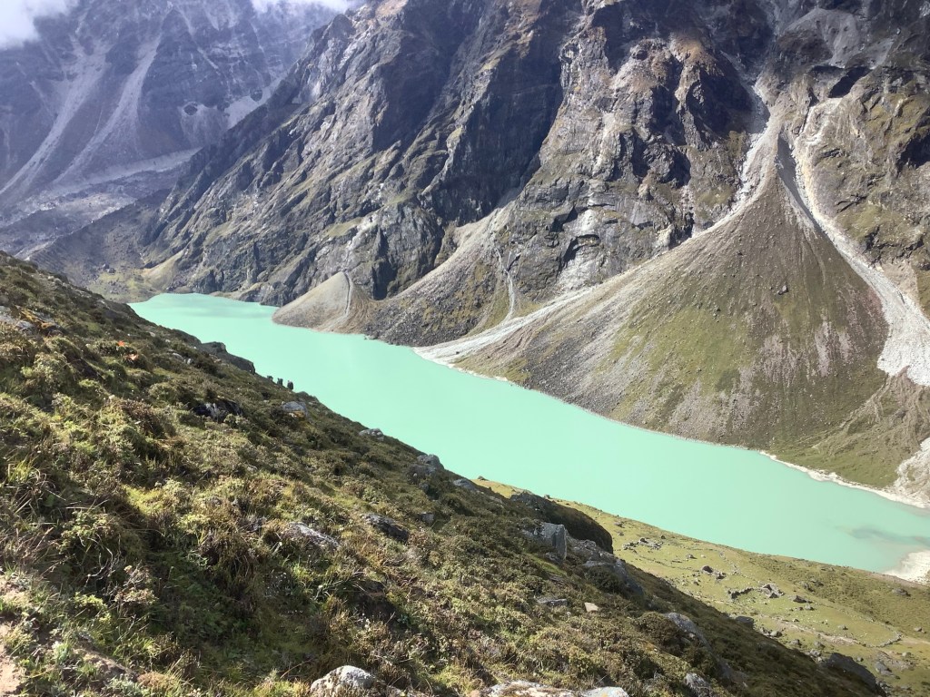 Leaving Gokyo at 9am the weather was good. The lake in front of Gokyo looked great.