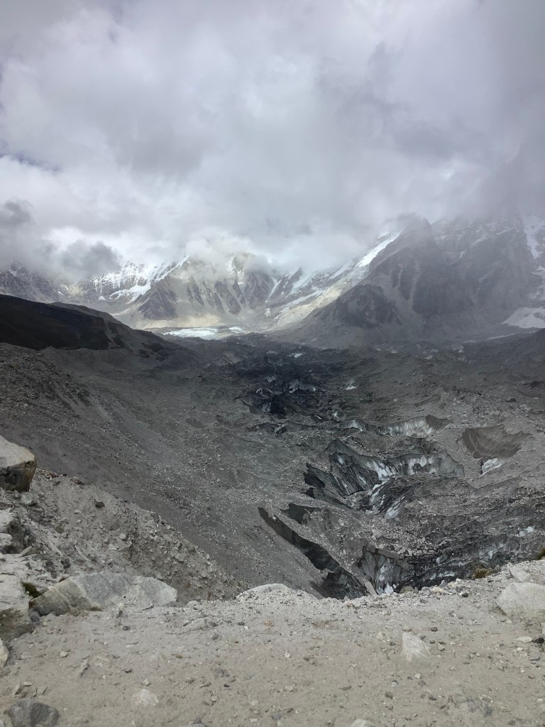 The glacier was what we had come to expect. With a huge wall of snow hanging over it halfway up Nuptse opposite us.