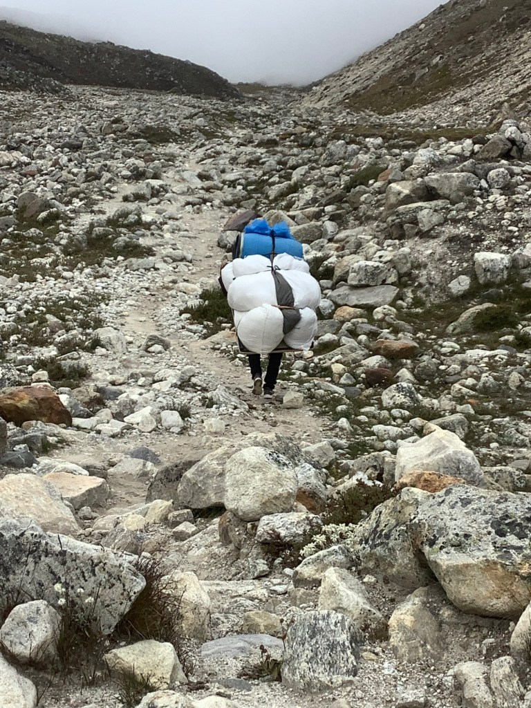 Lunch in Gorak Shep and then down to Lobuche. This isn’t a packhorse. It’s a packman.