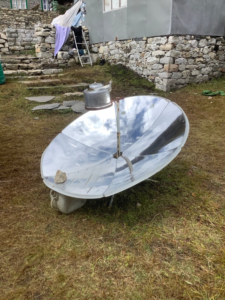 Back to the guest house garden, it doesn’t even take full sunlight to boil this solar powered kettle.