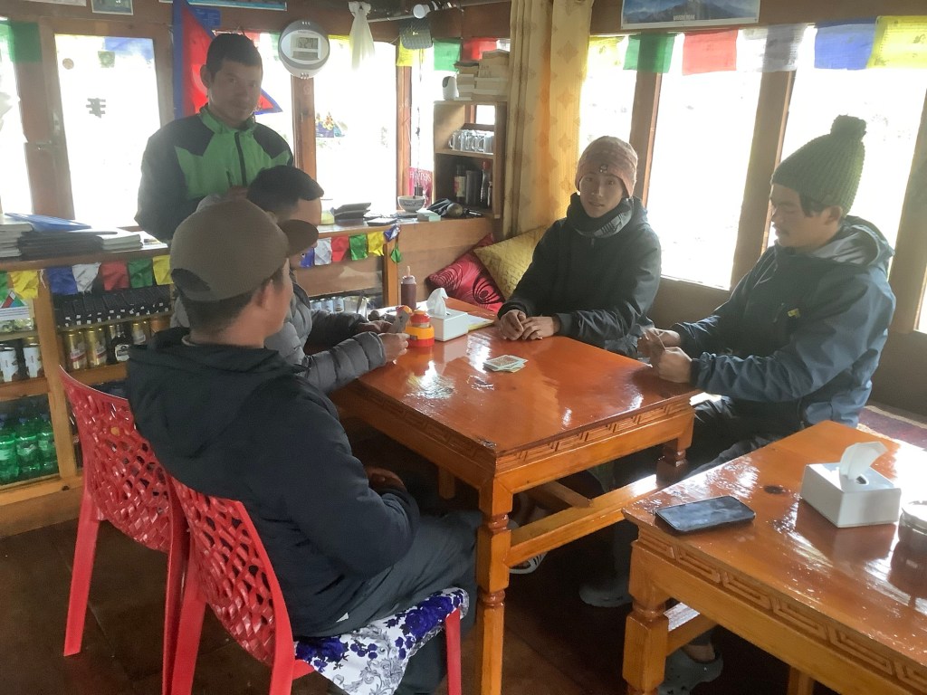 And we secured a very quick return to Gokyo, where the lads played cards and I blogged.