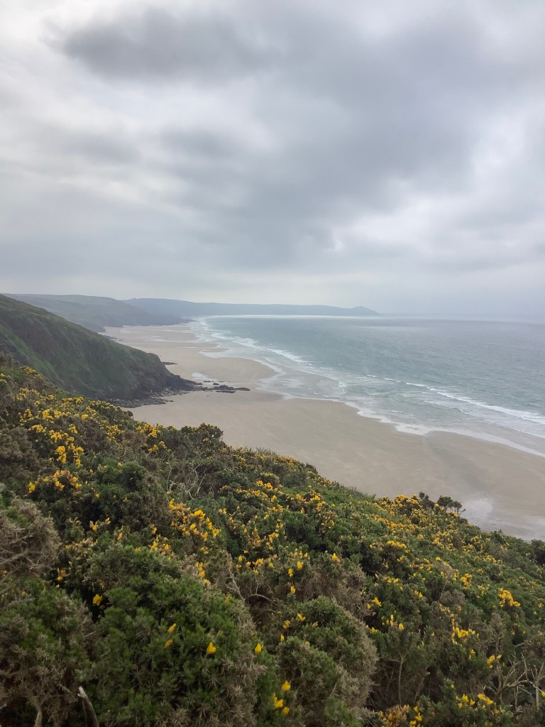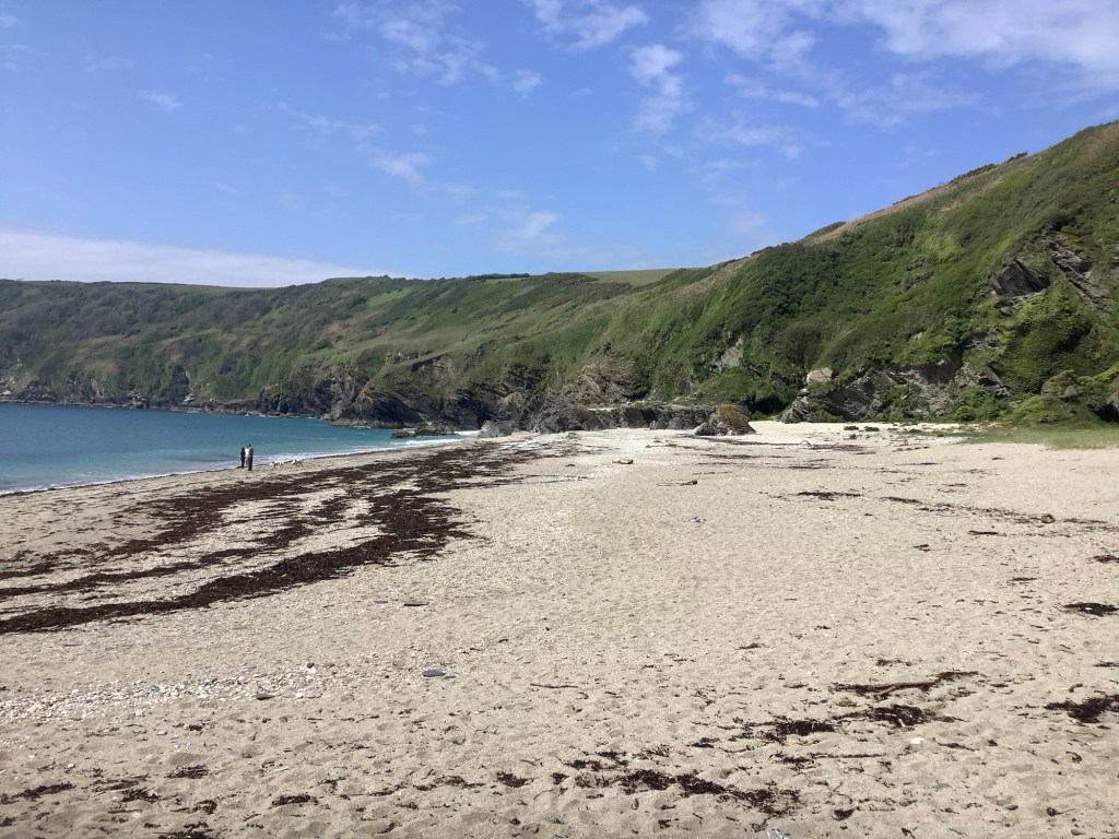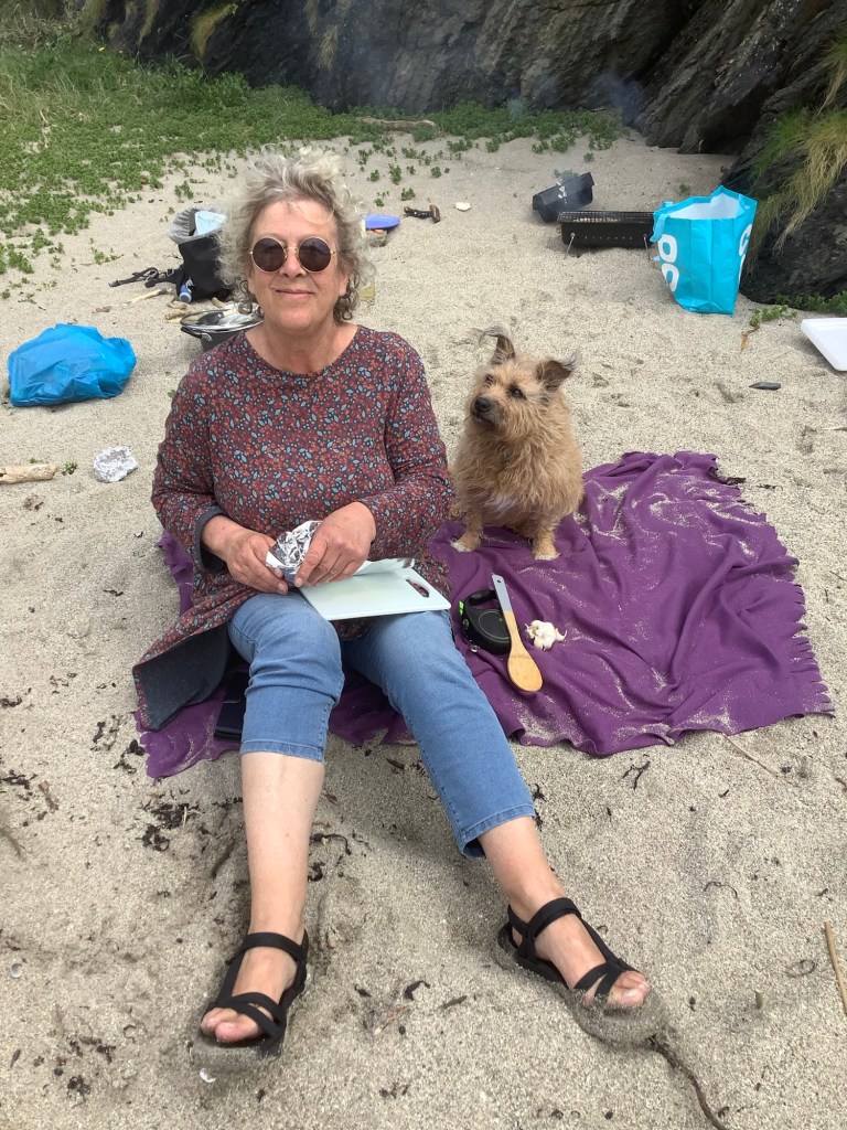 She drove us to the National Trust car park on the back of the cliffs and we trekked over to Lantic Bay with a shedload of scran and cooking items.