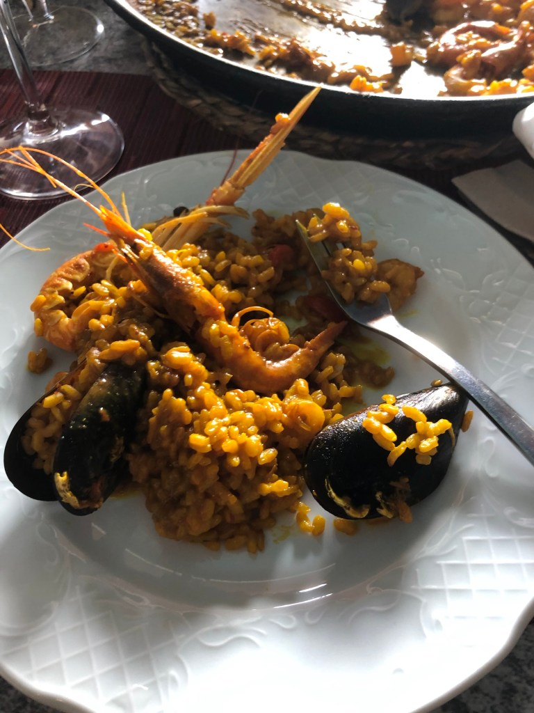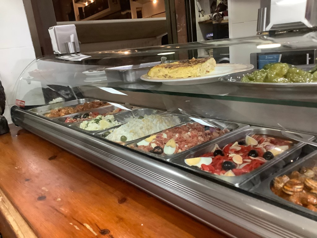 Early night and the next day we were up at 05.00 and on the deserted bus at six. Two hours later we decanted at Castellon at the train station and were on a train heading south within 15 minutes. A taxi in Valencia to the bus station and we just had time for a coffee before the bus to Beni bore us away. We arrived seven hours after we left Dolores’ des res. We did a good deal at our hotel for the extra night and set off on an eating spree.