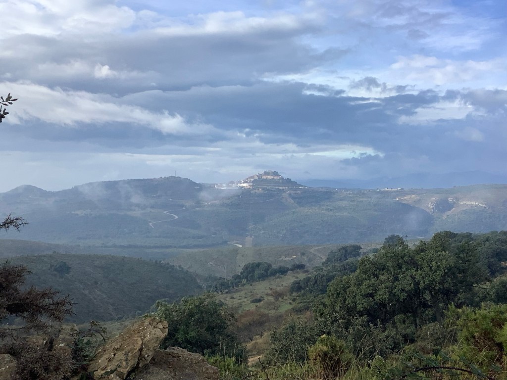 Setting off from Iffy’s we mounted the nearest mountain and looked back at where we used to live, Morella.