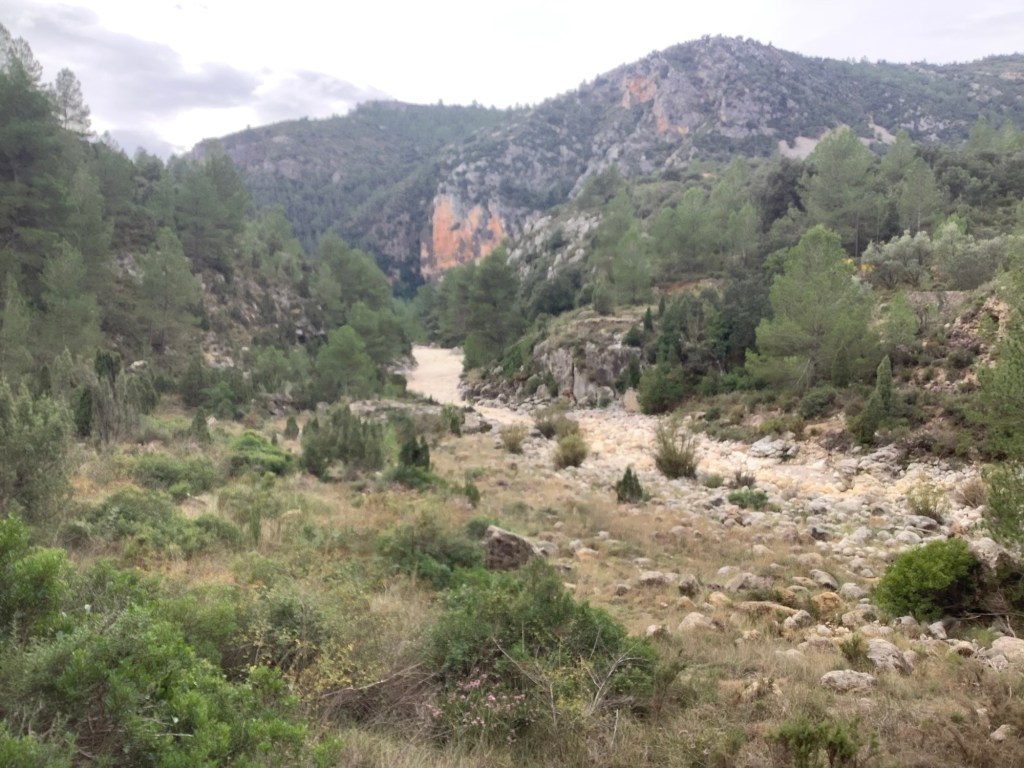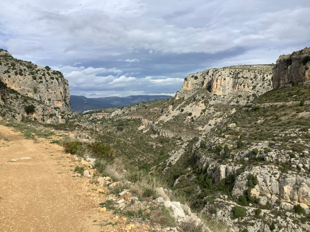 We stocked up on water and sugar drinks in Culla, as the temperature raised again and the rain cleared. In the far distance we could see Vistabella but the route would wind four miles down a ravine, followed by a longer climb up the other side. The route arced round to the north and on to the west before finishing with a six mile southwards section.