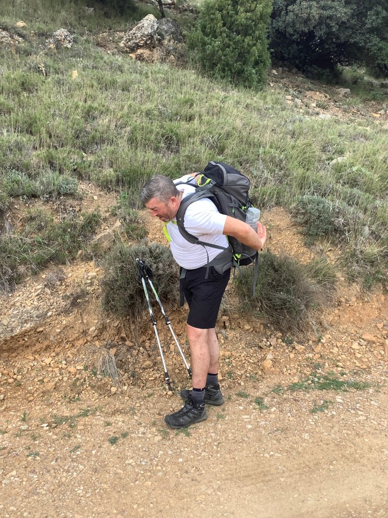 The saga of the knee continued and this time the pain was significant even before we had set off. We’re just mindful that this could be causing Gary some longer term damage, and that the next three days to the finish line were very hard trekking days. Apart from the first day down the Ebro valley every day had been tough but massively rewarding. No intervening villages and pure countryside every inch of the way.