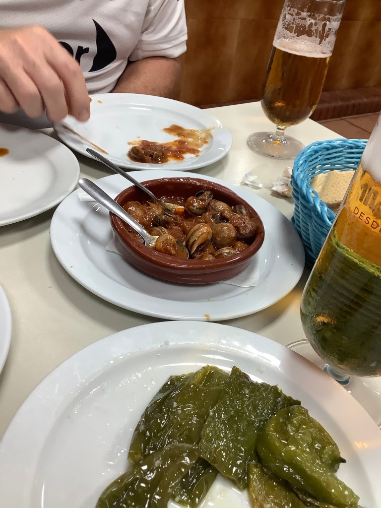 However his food was world class. Sausages, black pudding, artichokes, stewed peppers, coffee and back for second helpings. The black pudding melted on your tongue and the mild herby finish to it was worth fighting for. Not that we fought. We’re men of peace and we’re scaredy cats. Taking massive detours round bulls and running from dogs.