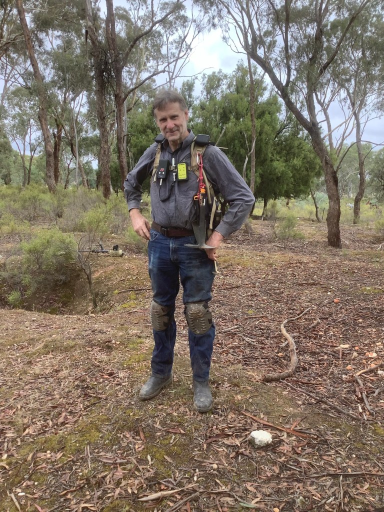 Today I set off in the dark at 06.30 (without breakfast) to drive to the Talbot goldfields. I was meeting my mentor Damien, and one of his friends, Ian a professional gold-hunter from Castlemaine.