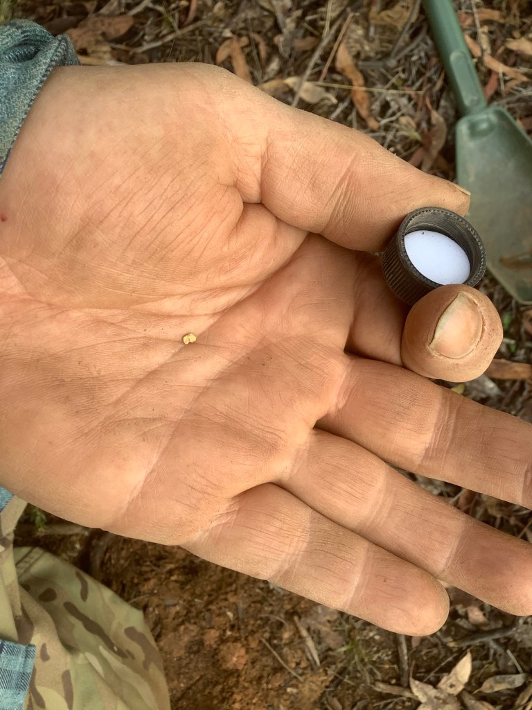 I wasn’t certain that it was gold and I took it to Damien for verification. He used his magnifying glass to confirm it was small, but perfectly formed Aussie, frickin gold. Gold I tell you!!! I was so happy.