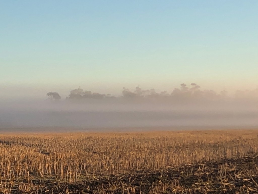 The clear, cold night left a legacy of mist in the valleys as the sun rose.