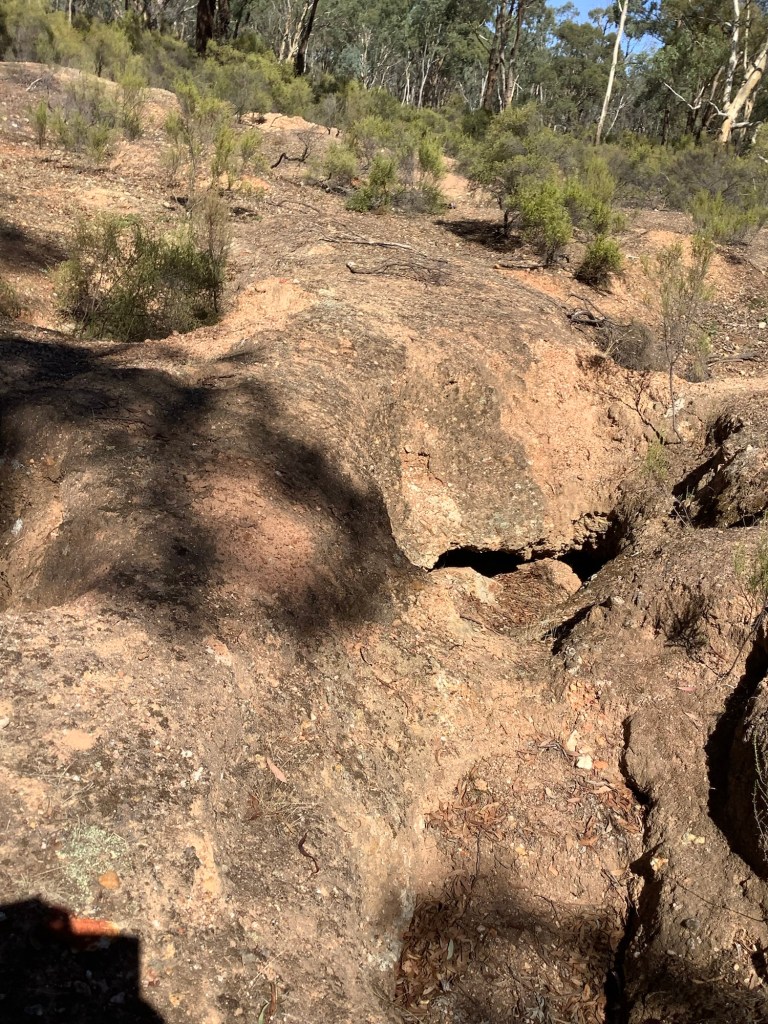 There are different types of workings, but they all date from around the 1850s to 1870s. They dug down and piled up the waste outside the hole, creating a mullock heap. The old timers didn’t have detectors so they couldn’t find all the gold in the rocks and soil they dug out and threw into the mullock heaps. So sad folk like me detect around them and find the small pieces that slipped through the net.
