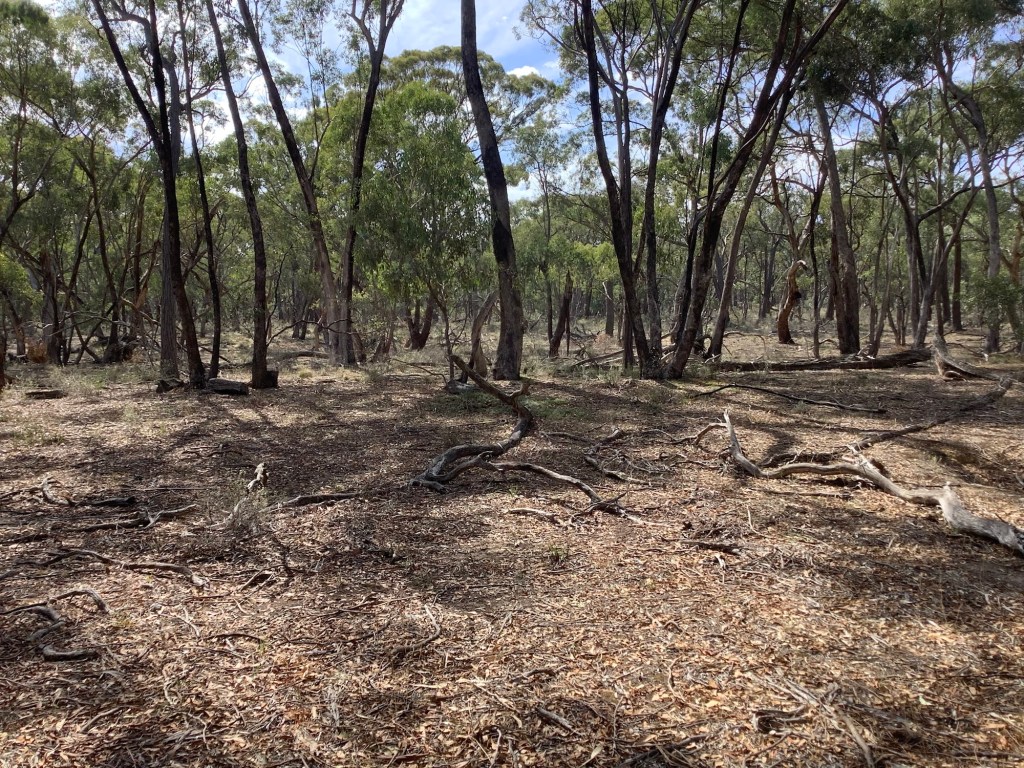 And on down to the Reserve. I hope it eases up a bit from this heat. I walked up to the old workings here and identified an area I wanted to detect. It took me half an hour to clear off the old leaves and fallen branches, because……… same old story……….because it was frickin hot. Not English hot. Proper hot, for autumn.