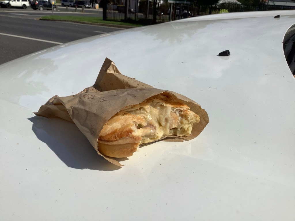 A cup of tea and a crocodile pie was six quid. And the crocodile pie was the best. It is a lovely meat.